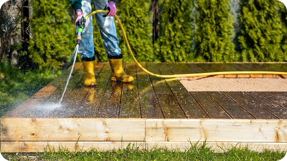 - Prevent slips and falls by waterblasting decks, paths, driveways and steps to make your property safe.